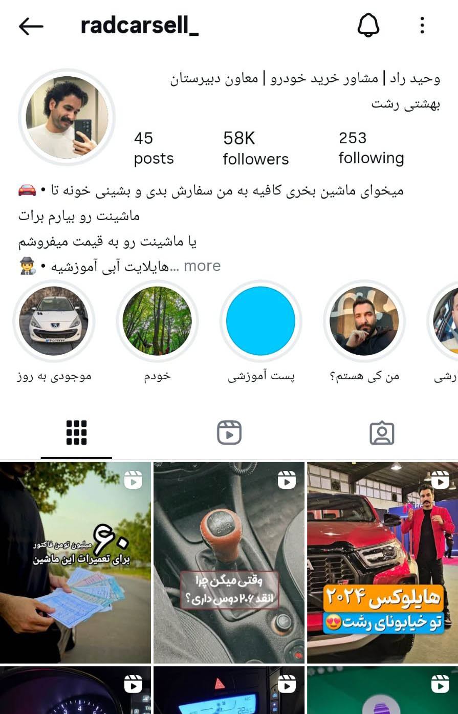 من وحید راد، معاون دبیرستان شهید بهشتی رشت هستم که در تایم عصر و بعد از مدرسه، کارم خرید و فروش خودرو برای مشتریانم هستش.